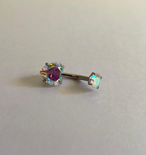 Navel doble corazón engarzado